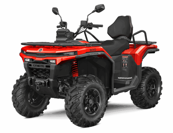 CFORCE 500 Basic — легкий и компактный бюджетный квадроцикл. Оснащен пассажирским сиденьем со спинкой и поручнями, поэтому подходит для прогулок, в том числе со спутником. Комплектуется 35-сильным двигателем, багажными платформами и съемным фаркопом, поэтому хорош для перевозки грузов. Благодаря полному приводу с блокировкой дифференциала, 25-дюймовым универсальным шинам и клиренсу 262 мм уверенно едет по легкому бездорожью. Чтобы стоимость модели осталась доступной, из комплектации убрали электроусилитель руля и лебедку.