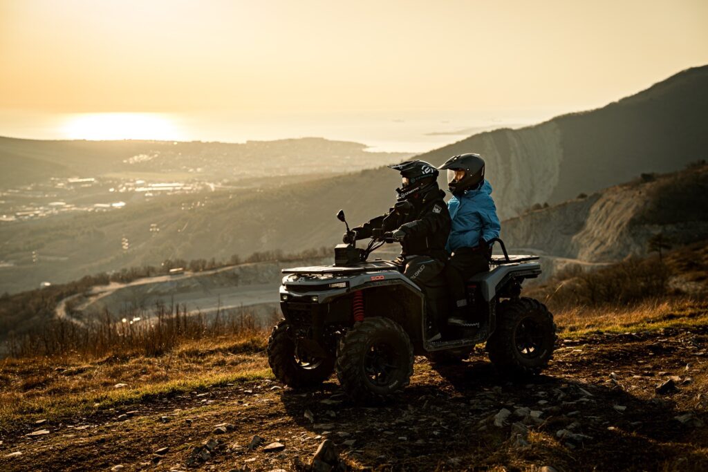 Комплектация у квадроциклов богатая. Она включает цифровую панель приборов, двухместное сиденье со спинкой и ручками для пассажира, багажные площадки, стальной бампер, аккумулятор повышенной емкости, розетку 12 V, USB-разъем и съемный фаркоп. Есть все для езды по дорогам общего пользования — зеркала заднего вида, габаритные огни, клаксон.
