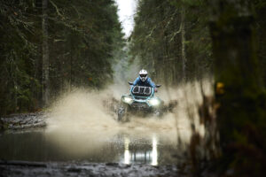 Новинка создана для тех, кто не боится вызовов и готов покорять самые сложные маршруты. Благодаря увеличенному дорожному просвету в 334 мм и 30-дюймовым грязевым шинам CST SLUDGE HAMMER вы сможете уверенно двигаться по труднопроходимым участкам, сохраняя управляемость и сцепление колес с любой поверхностью. Поднятая на 200 мм лебёдка и специально разработанные подножки обеспечивают улучшенную проходимость, а прочные защитные элементы сохранят технику от повреждений во время поездок по сложным рельефам и обеспечат необходимую безопасность райдеру.