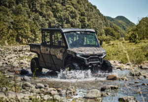 Модель оснащена грузовой платформой с электронным управлением гидравлическим подъемным механизмом, которая выдерживает нагрузку до 450 кг. Лебёдка с синтетическим тросом с пультом управления (который также управляет грузовой платформой) упрощает выполнение сложных задач. Режимы эксплуатации Work и Normal позволяют адаптировать поведение мотовездехода под текущие условия, будь то работа в поле или поездка по пересечённой местности.