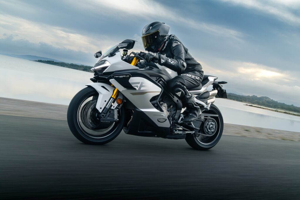 750SR-S (ABS) — спортивный мотоцикл с новым рядным четырёхцилиндровым двигателем объёмом 749 см³ и мощностью 111 л. с., рассчитанный на динамичную езду и высокие скорости. Байк уверенно ускоряется на трассе и стабильно держит темп благодаря системе инерционного наддува, которая увеличивает мощность на скоростях выше 150 км/ч и улучшает охлаждение двигателя. Аэродинамический обтекатель и крупный передний спойлер создают прижимную силу и повышают устойчивость на скорости, а характерная система из четырёх высоко расположенных выхлопных труб подчёркивает спортивный характер модели. Подвеска с широкими возможностями регулировки, задний амортизатор с выносным резервуаром, рулевой демпфер и квикшифтер помогают точнее контролировать мотоцикл при активной езде. За безопасность отвечают ABS и трекшн-контроль, работающие через шестиосевой IMU-модуль, а современное оснащение включает 6,2-дюймовую TFT-панель приборов, запуск по NFC и электронный замок без физического ключа.