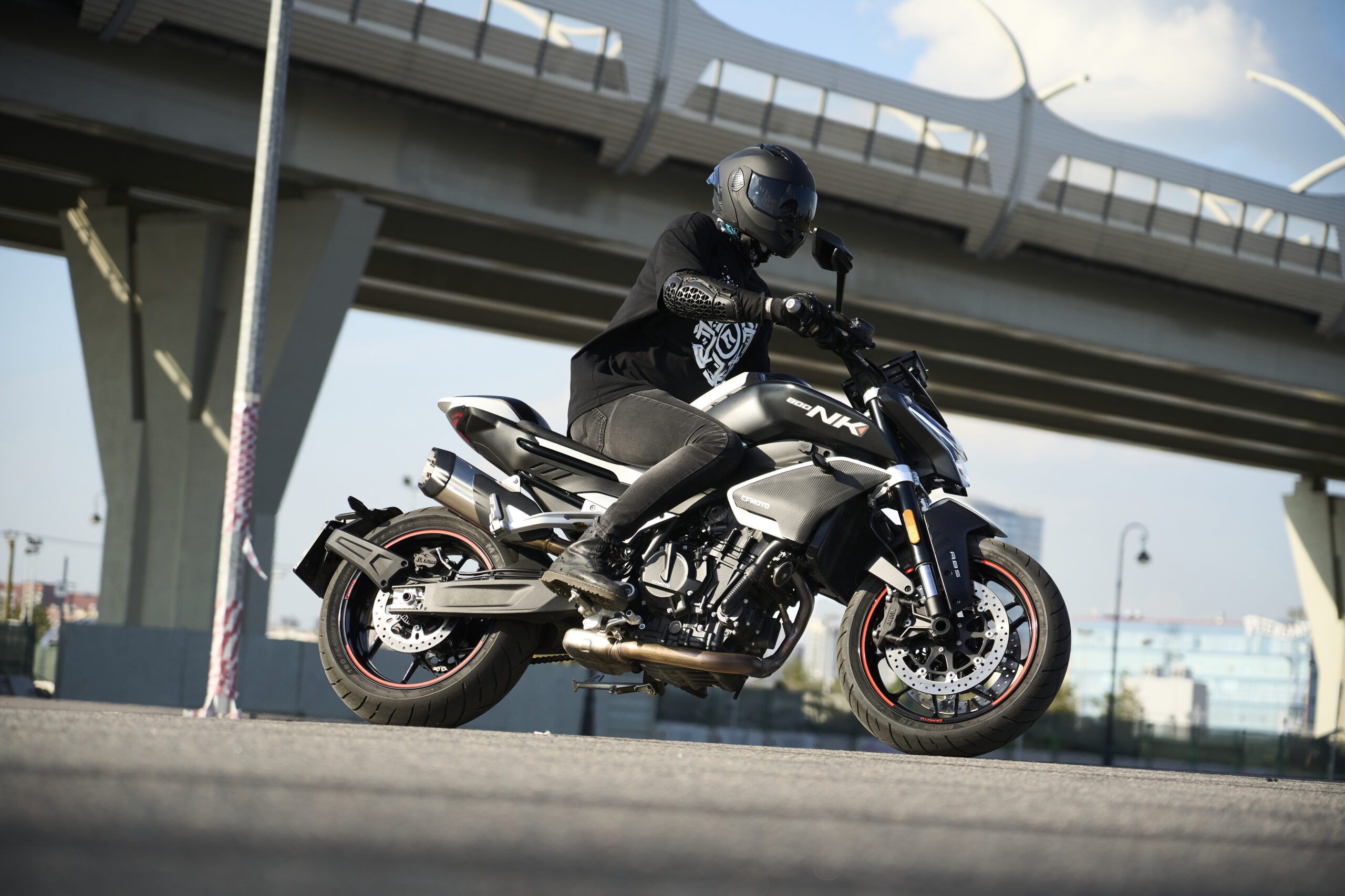 Агрессивность стильного дизайна NK-серии выражена здесь резкими линиями корпуса, топливный бак выглядит по-мужски брутально. Весь внешний вид модели буквально пропитан духом смелости и авантюризма.