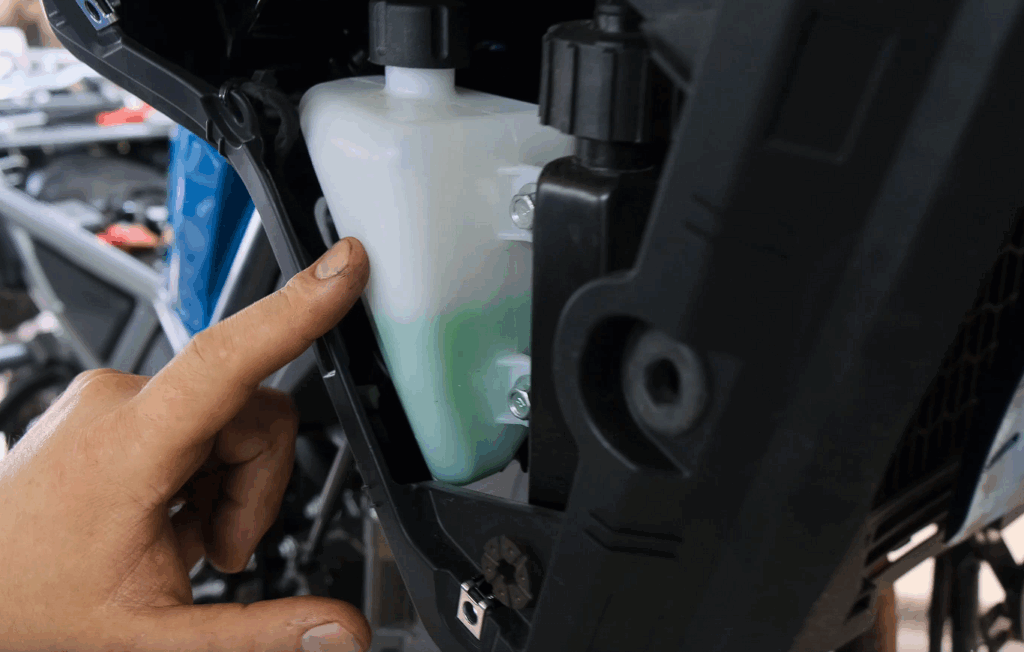 На мотоциклах с жидкостным охлаждением есть специальный бачок под антифриз