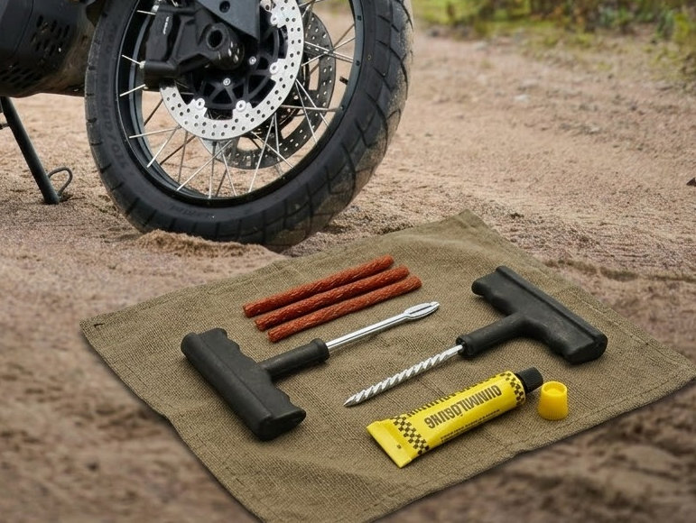 Комплекты для ремонта шин не занимают много места и просты в использовании. Каждый мотоциклист должен иметь такой набор в своём снаряжении, чтобы быстро произвести ремонт в дорожных условиях.