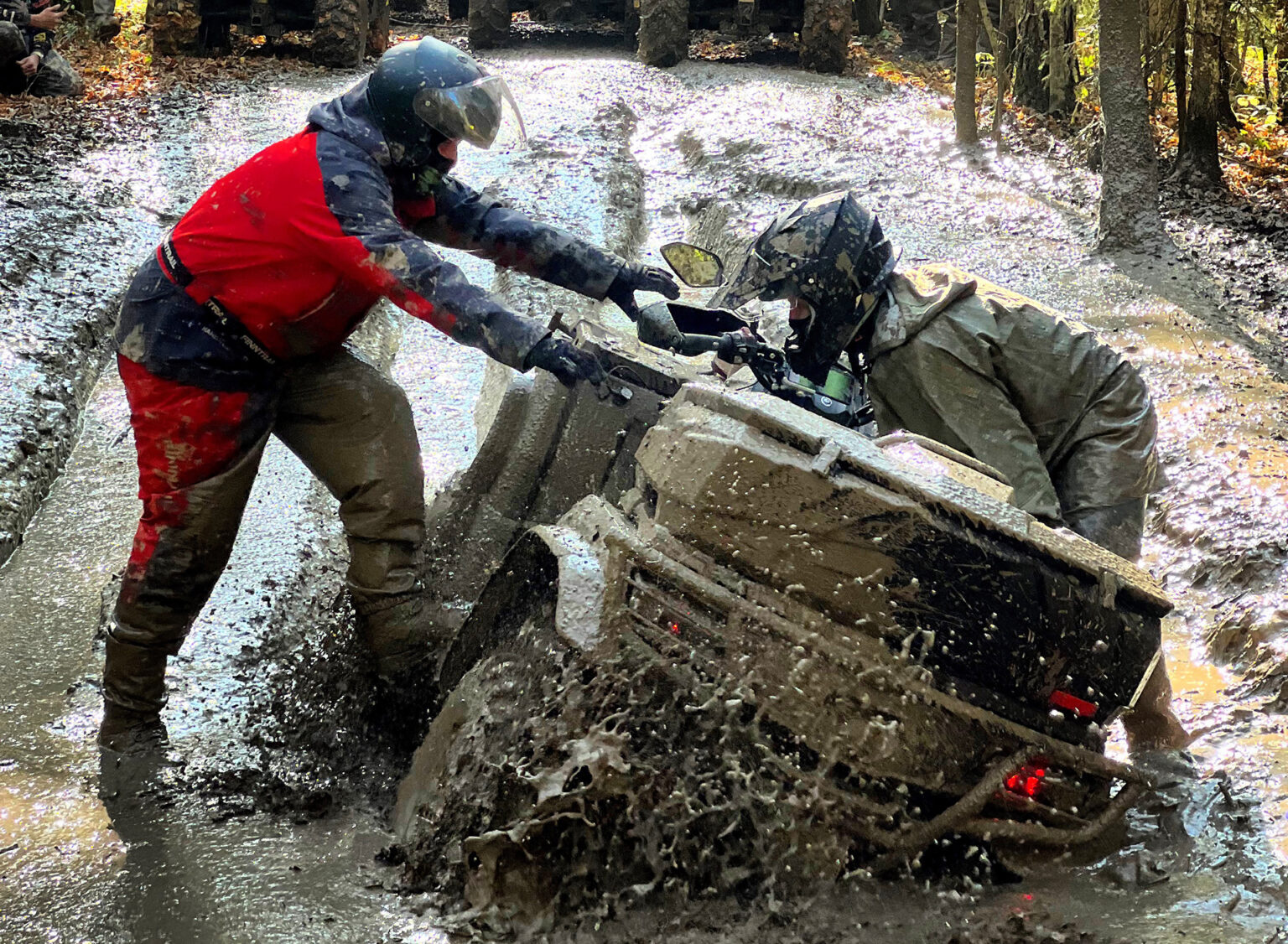 - если квадроцикл забуксовал, не нужно газовать — от этого он только глубже закопается. Вместо этого лучше воспользоваться лебедкой. Если её нет, можно попробовать раскачивать технику вперед-назад.