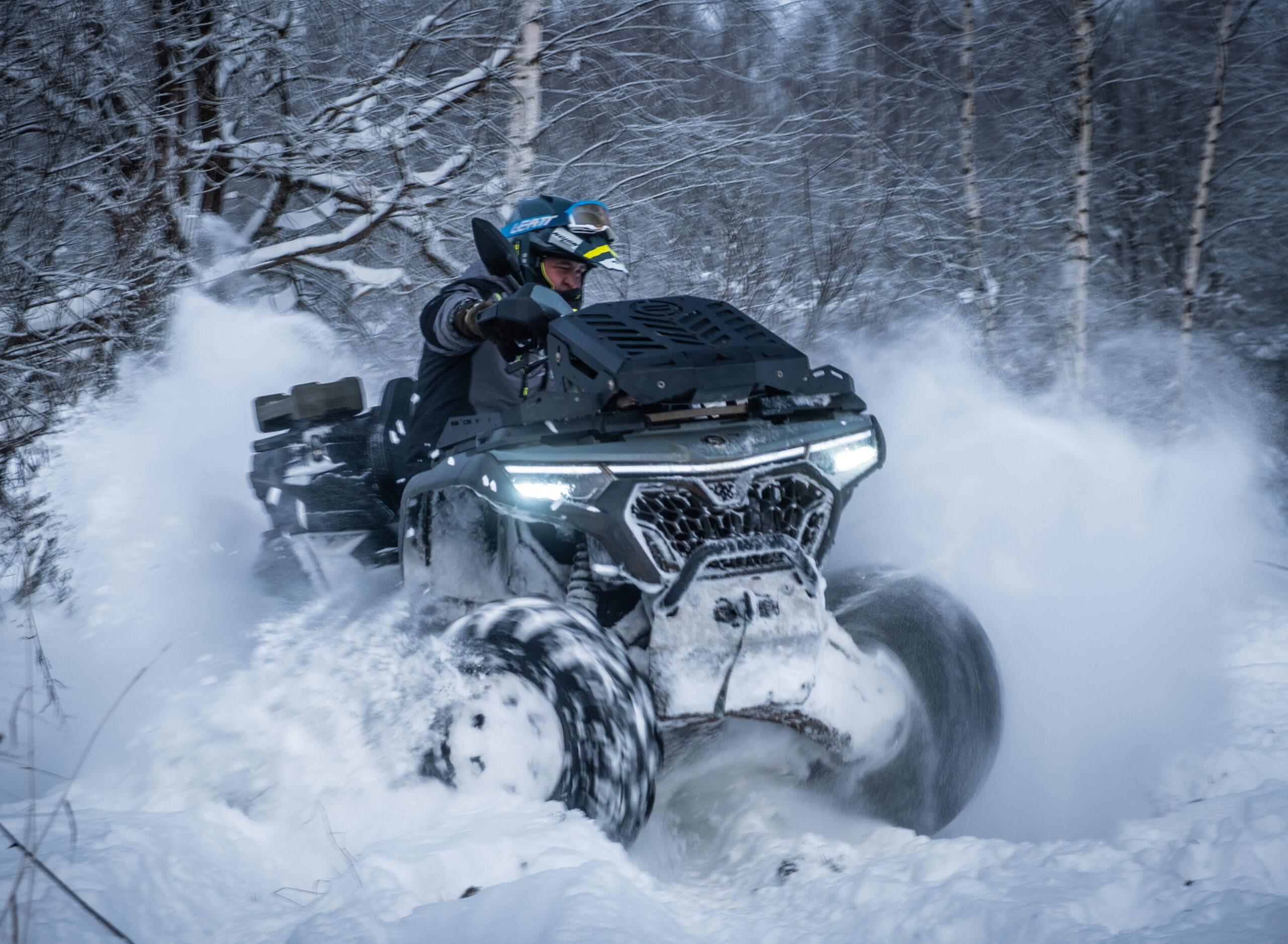 Квадроцикл можно использовать круглый год. При этом за счет отличной управляемости и устойчивости на низкой скорости на нем комфортно пробираться даже по густому лесу.